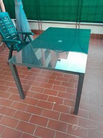 Vendo tavolo da esterno colore nero con pianale in vetro e telaio in ferro