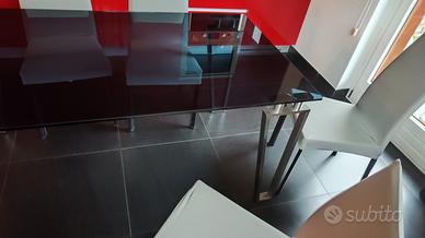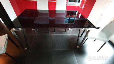 Tavolo in vetro con gambe in acciao molto bello. Dimensioni 160 x 90 x 75 (lung x larg x alt). Non spedisco