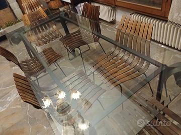 Vendo tavolo in vetro temprato e prismato e ferro battuto.