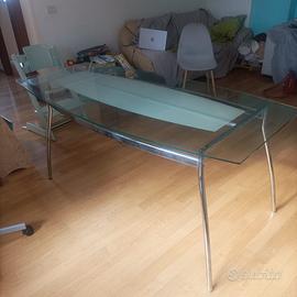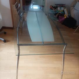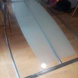 Vendo tavolo da pranzo in vetro e metallo dal look moderno ed elegante, perfetto per cucina o soggiorno.