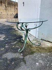 Vendo splendido tavolino da esterno/interno realizzato in ferro battuto con finitura effetto rame/ossidato e piano rotondo in vetro temperato. Un pezzo unico, dallo stile classico e ricercato, perfetto per arredare giardini, terrazzi, portici, verande o ingressi, ma ideale anche come tavolino da salotto o zona relax. Condizioni Buone, usato ma tenuto in modo ottimale senza graffi, rotture, o scheggiature Misure; altezza 70 cm Diametro 90 cm Oggetto di qualità, ideale sia come elemento funzionale che decorativo. Prezzo trattabile – disponibile per visione e ritiro in zona firenze nord Contattami per qualsiasi informazione aggiuntiva o per venire a vederlo!