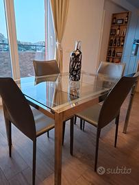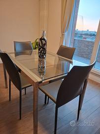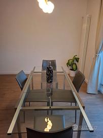 Vendo tavolo Ikea in vetro allungabile con struttura in acciaio. Dimensioni tavolo: cm 85x125 (chiuso) - cm 85x187 (aperto).