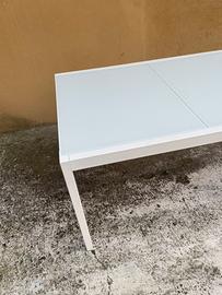 Tavolo da cucina allungabile 125/185x85 Struttura in metallo biaco e vetro azzurrato