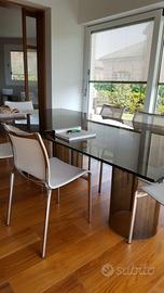 Le gambe cilindriche sono le vere protagoniste del tavolo Luxor. La sapiente lavorazione del vetro, dove l'unico limite è la fantasia, fanno di questo tavolo, non solo un semplice complemento d'arredo, ma una piccola opera d'arte.