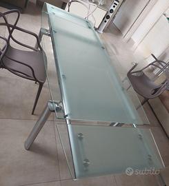 Elegante tavolo con piano in vetro e struttura in metallo. Il design moderno si adatta a diversi ambienti.