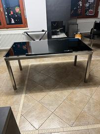 Vendo per cambio casa tavolo in vetro nero temperato con piedi in acciaio inox , usato poco con soltanto un piccolo graffio . Tenuto sempre coperto con tovaglia plastificata . Le sue misure sono : Tavolo chiuso 160x80 - tavolo aperto 200x 80 . Prezzo €500 trattabili escluso il trasporto