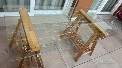 Tavolo in vetro e legno misure 150x80 altezza 75