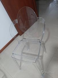 tavolo in vetro trasparente con basamento cromato più 4 sedie trasparenti polipropilene. lunghezza tavolo 160/90
