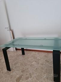 Vendo tavolo moderno in vetro satinato di design con gambe in legno nero.