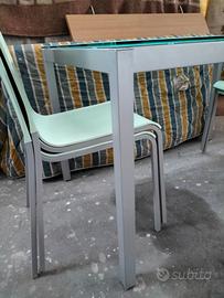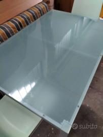 Vendo tavolo in vetro satinato, struttura in acciaio satinato gamba quadrata.