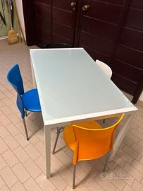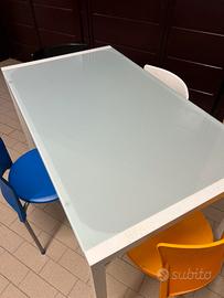 Tavolo in vetro satinato con struttura in ferro Con il tavolo regalo le 4 sedie Dimensioni: Lunghezza 120 cm Larghezza 70 cm Altezza seduta 70 cm Altezza totale 74 cm