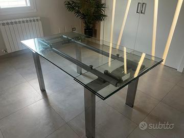 Vendo tavolo in vetro allungabile con piedi in acciaio cromo misura 80x160/220 + nr. 4 sedie in acciaio cromo e nylon di colore bianco. No spedizione, ritiro zona Agrigento