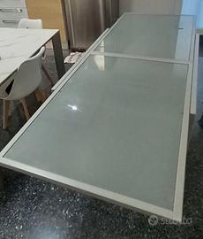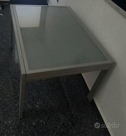 vendo tavolo allungabile con struttura in metallo grigio e piano in vetro,( 120x90 tavolo chiuso) e (240x90 tavolo aperto)