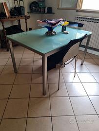 tavolo in vetro, come nuovo. + sedie usate, con qualche segno come da foto misure tavolo 85x130 allungabile + 65 altezza 72