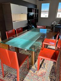 Vendo tavolo da pranzo moderno con piano in vetro temperato spesso e struttura solida.