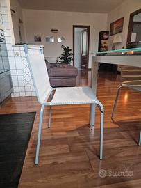 Tavolo in vetro allungabile temperato di design con 4 sedie . misure: 140x90 h 75 + 60 di allungo. Disponibile SOLO per fine Marzo.
