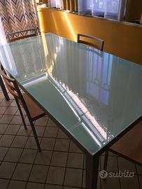 Tavolo in vetro temperato 1.80x90 Vetro in perfetto stato come nuovo ,sui piedi si presenta qualche piccolo graffio,da ritirare in Loco in zona Trecase