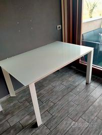 tavolo con struttura in ferro e base di appoggio in vetro temperato satinato. molto robusto, misura 120x150 allungabile fino a 220cm.