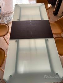 tavolo in vetro temprato con gambe in legno rivestite. misure 140x 80cm , allungabile a 190cm. No spedizione.