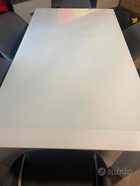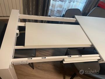 Si vende tavolo color bianco, estensibile, con piedi in metallo e piano in vetro.