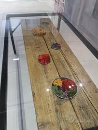 Tavolo da pranzo/riunioni stile industriale con piano in vetro temperato