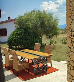 Piano in legno di noce massello con due mani di impregnante marino, + antitarlo +3 mani di vernice poliuretanica di finitura (quello adatto alle barche e agli ambienti marini) che lo rende completamente impermeabile.