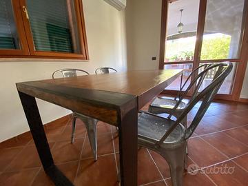 vendo tavolo industriale con tavola di legno antica spessa 5 cm fascia di ferro 10 cm misure 150x85x77h presa in un famoso negozio di arredamento sono disponibili anche le sedie