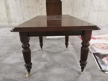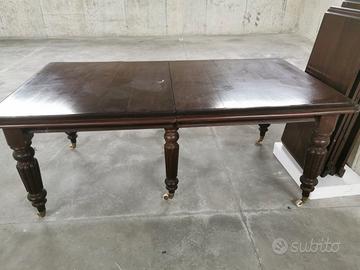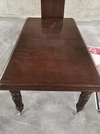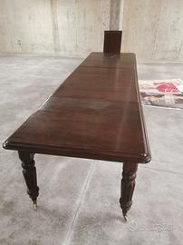 Tavolo inglese in legno di mogano con ruote in porcellana misure mt. 1,08 larghezza e mt. 3,80 in lunghezza, 6 gambe
