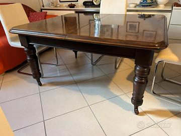 Vendo tavolo inglese dell’800 in mogano, allungabile. Misure 150 cm x 120 cm più 2 prolunghe, una da 55 cm e l’altra da 47 cm.