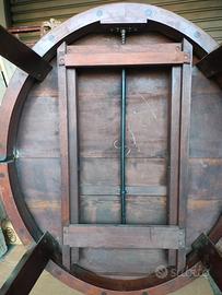 Tavolo ovale allungabile a manovella con ruote, realizzato in legno di mogano, stile inglese della seconda metà dell'800. Il meccanismo di apertura, la manovella e le ruote sono originali dell'epoca e perfettamente funzionanti. Lunghezza (chiuso) 1,20cm Lunghezza (aperto) 1,82cm Larghezza 1,05cm Altezza 75cm Prezzo trattabile