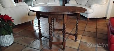 Vendo tavolo inglese in legno massello di rovere databile ai primi del '900. Ha un piano ovale con bandelle laterali che permettono di richiuderlo ed ottenere un piano rettangolare e riporlo in uno spazio più stretto, anche con funzione di ripiano a lato di un divano o di una poltrona. E' un pezzo molto elegante ma inseribile anche in un contesto moderno vista la sua adattabilità.