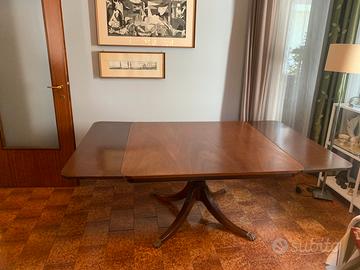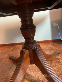 Splendido tavolo inglese vittoriano. Misura cm 120x120 più due prolunghe di cm 35 per un totale di cm 120x190. Piedini a zampa di leone in ottone. Ottime condizioni. Regalo sei sedie coeve, di cui quattro da ripristinare nella seduta. Solo ritiro o vostro corriere.