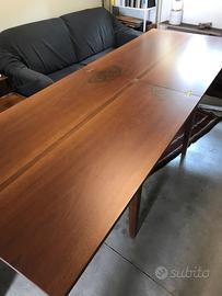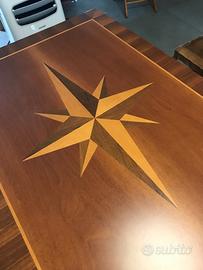 Magnifico tavolo intarsiato con la Rosa dei Venti. Allungabile.