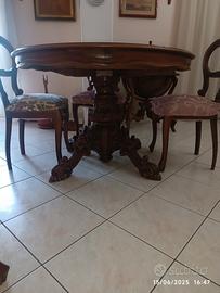 Come da titolo vendo tavolo rotondo intarsiato estensibile anni 70 con 4 sedie come nuovi. Prezzo leggermente trattabile.