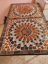 tavolo intarsiato in mosaico marmo ,pezzo di arredo,il tutto di struttura ferro battuto