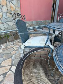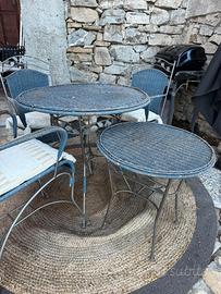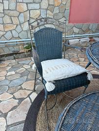 Tavolo con tavolino piu piccolo e 3 sedie in materiale intrecciato + 3 sedie blu
