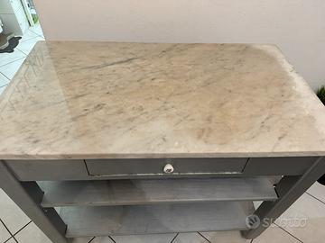 Tavolo x isola pezzo unico con piano di marmo e pomello x cassettino originali.H88 L105 P60