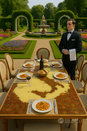 nella foto di copertina e in 2 della galleria, 3 possibili collocazioni del tavolo in 3 diversi giardini.