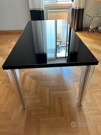 Piano in poliestere laccato colore nero ricoperto da una lastra di vetro.