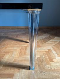 Le gambe sono trasparenti a sezione quadrata, con la superficie sfaccettata e un'anima in acciaio cromato.