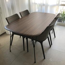 Tavolo Kartell in legno impiallacciato e sostegni in acciaio verniciato nero opaco. Usato pochissimo. Misure 160x90 cm. Disegnato da Philippe Starck