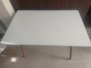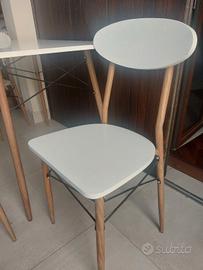 vendo tavolo Kasanova completo di 4 sedie , bianco con piedi in acciaio effetto legno. MISURE : Lunghezza 1,10cm x 70 Larghezza