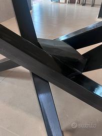 Vendo per cambio arredo tavolo eseguito da un artigiano con base incrociata in ferro verniciato e piano in legno trattato sbiancato. Lunghezza totale 230 cm. Spessore del piano 3.5 cm. H tavolo 78.7 cm. Il piano presenta delle macchie da usura, quindi va ricarteggiato e nuovamente pitturato. Angoli smussati.