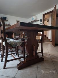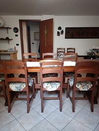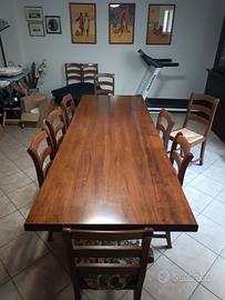 Tavolo in legno L.250 P.90 H.80 cm e n. 10 sedie con seduta in paglia L.40 P. 42 H. 94 H. seduta 46 cm