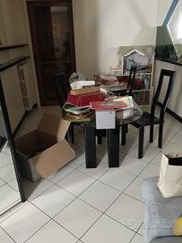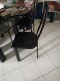 tavolo ovale in cristallo laccato nero e 4 sedie in pelle nera