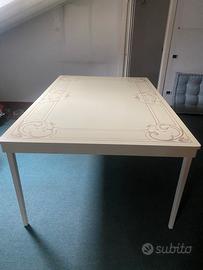 Tavolo laccato panna con decorazionim. 2 x m. 1,30 altezza cm 83