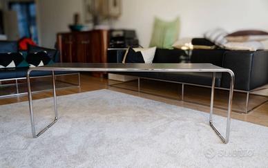 THONET. Bellissimo iconico tavolo modello LACCIO B10 135 opera Bauhaus di design modernista del maestro Marcel Breuer 1925-1926 produzione THONET. Struttura in Acciaio inox Mannesmann a specchio e piano in laminato in finitura color nero. Dimensioni (L x l x h) : 130 x 38 x 50 cm