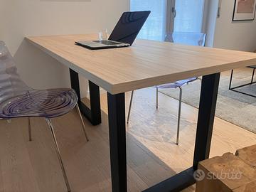 Vendo tavolo NUOVO appena assemblato, con piano in laminato 30mm texture materica noce chiaro naturale (molto simile al rovere chiaro o sbiancato), dimensioni 190 x 80 cm, e doppio sostegno in tubolare 80x40 fissato mediante bulloneria.