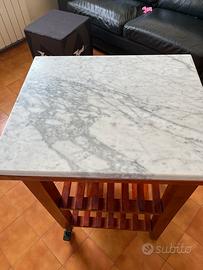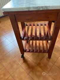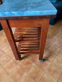 Tavolo per lavoro da cucina come da foto in legno con base di marmo di carrara misura 60x50x 3 di spessore, misura tavolo 60x50x88 di altezza, solo ritiro .