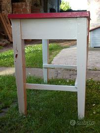 La struttura (parte bianca) è in legno, mentre il piano (parte rossa) è in marmo anche se attualmente è ricoperto di formica che volendo si può rimuovere.